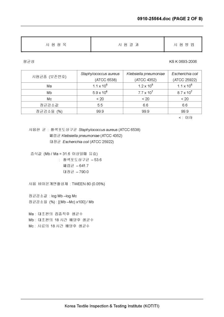 항균테스트(황색포도상구균, 폐렴균, 대장균)